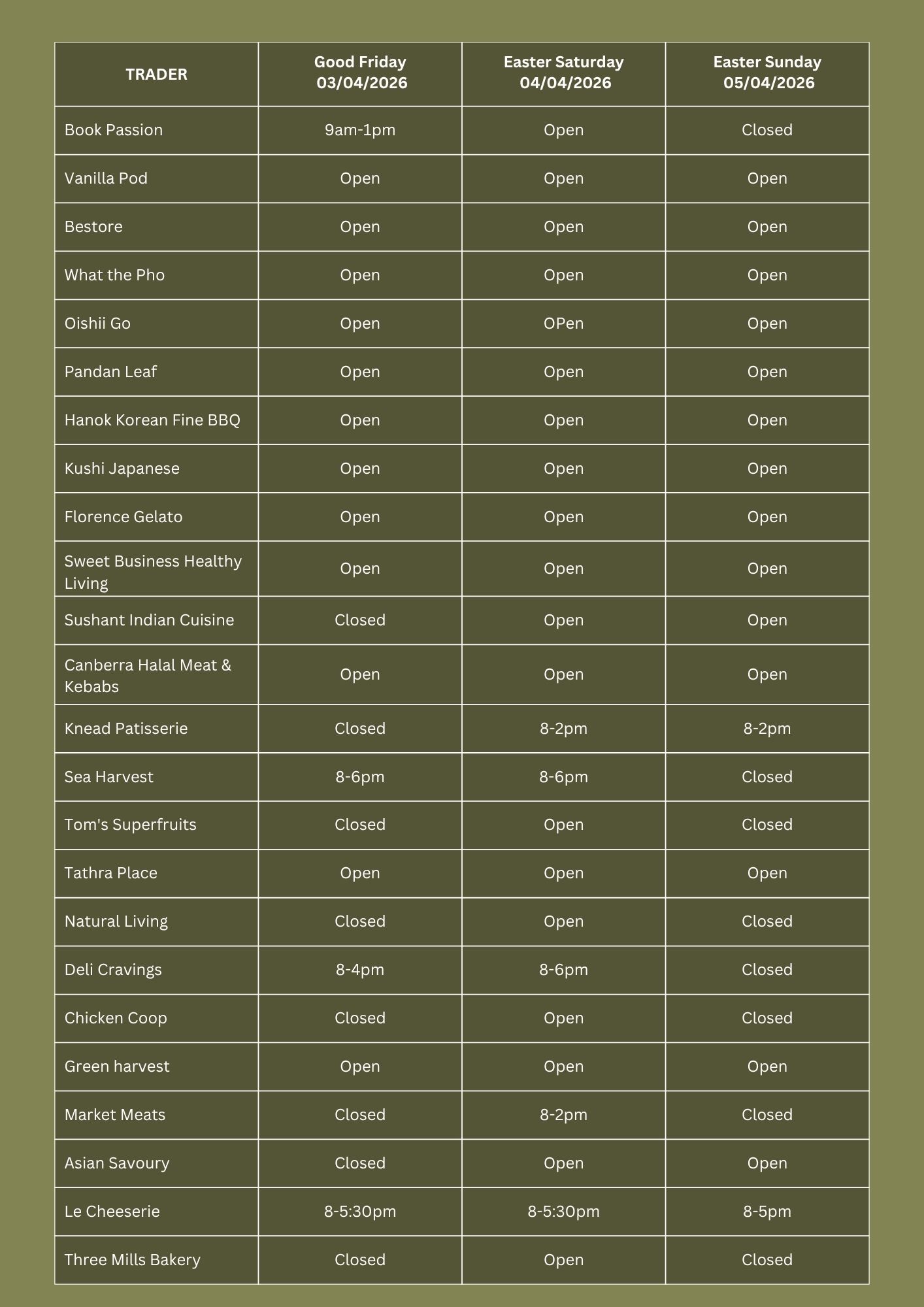 Easter Opening Hours